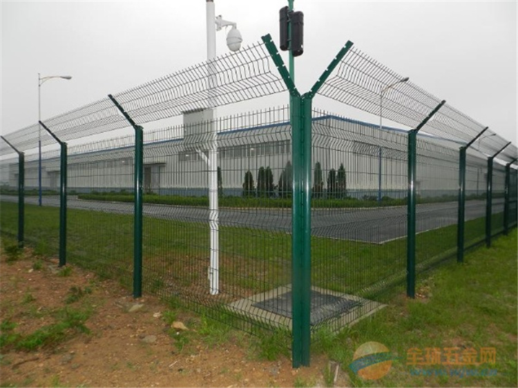 飛機場圍欄網又稱作鋼筋界圍網,“Y型安全防御護網”,是由V型支架立柱,加強型焊接片網,安全防盜連接件熱鍍鋅刀片刺網組成強度和安全防御性級別很高。
