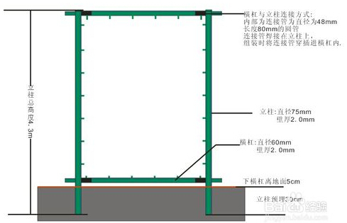 二、接下來就是套管了,立柱的上部和下部兩端焊接出375px左右的套管,用來插接橫管。插接上橫管后體育場圍網的框架就形成了。